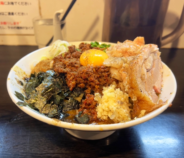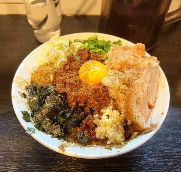 ■豚星。の台湾混ぜ蕎麦(ニンニクアブラ花椒)。有料でブタ1枚。