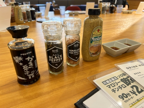 肉にほぼ味がついておらず、自分の好みで味付けする方式。2種のソースを提供されますが、卓上に置かれた牡蠣醤油もなかなか良い仕事をします。
