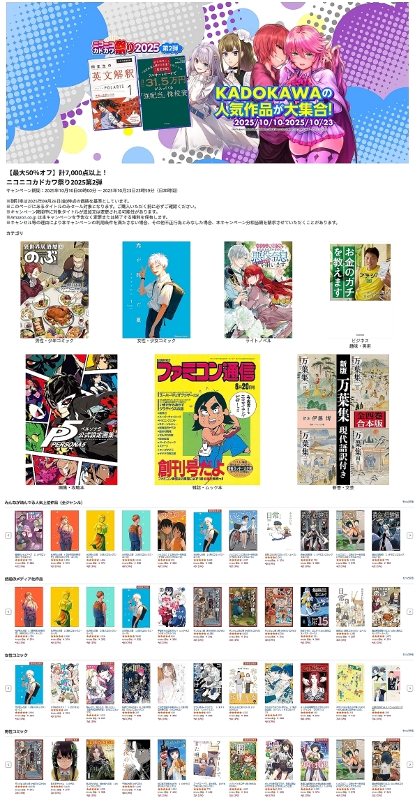 ■Kindleストア:【最大50%オフ】計7,000点以上! ニコニコカドカワ祭り2025第2弾