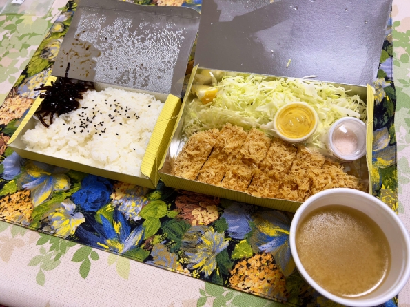 カツを囓ってご飯を掻っ込み、キャベツや昆布でリセット。最後に残った豚汁をグイッと飲み干しご馳走様。