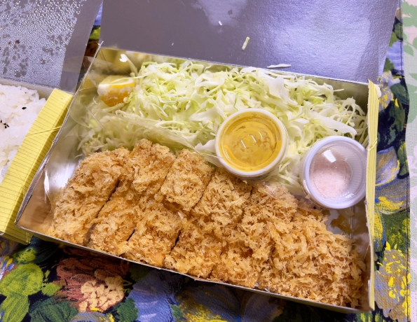 キャベツ用にはドレッシング(ミニカップの黄色いやつ)、トンカツ用にはソースと芥子、ピンクソルトとレモン付き。 お肉が美味しいから、ピンクソルト&レモンがベスト! 堪らんです。