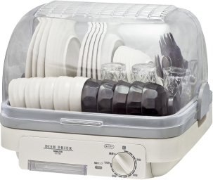 ■[山善] 食器乾燥器 大容量 (5人分) 120分 タイマー付き ライトグレー (自然対流式) (抗菌/防カビ) 小型 工事不要 YD-180(LH)