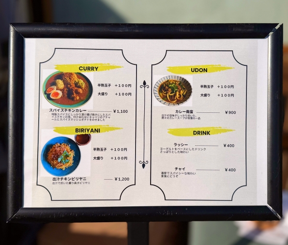 蕎麦屋さんの居抜きだから、店構えも店内も蕎麦屋丸出しで面白かった(店内に色々インド系装飾をしているのだけど、隠しきれない蕎麦屋感)。