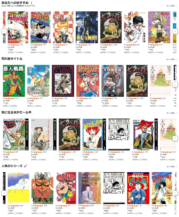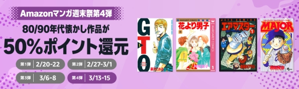 ■Kindleストア:Amazonマンガ週末祭 金・土・日は対象作品が50%ポイント還元