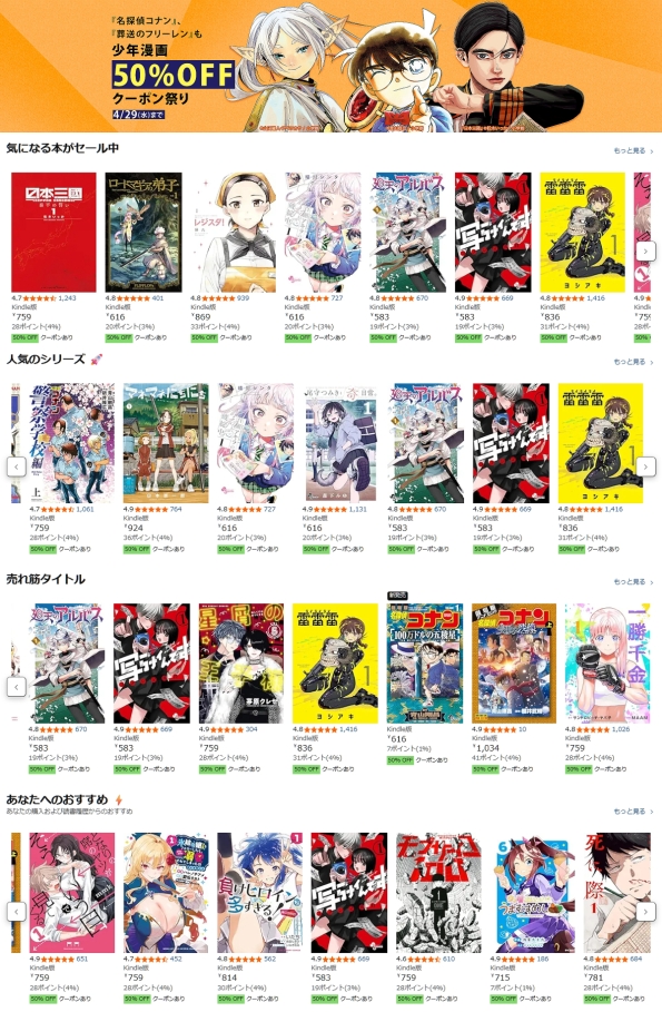 原作小説の4巻までが半額になっています。